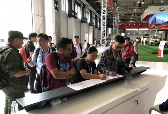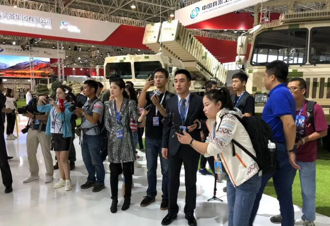 來自新華社、人民網、中國軍視網、環球網、騰訊網、新浪網、網易網、新浪微博觀展團、一點資訊軍事報道團等中央與網絡主流媒體的記者朋友、網絡大咖齊聚中國兵器館,與VT5型輕型坦克、AR3型多管火箭炮、PLZ52型155毫米自行加榴炮、VN17型履帶式步兵戰車、紅箭10型多功能導彈系統等主要展品親密接觸,進一步了解裝備的性能和特點。