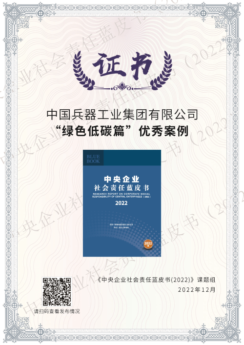 兵器工業(yè)集團綠色低碳案例入選《中央企業(yè)社會責任藍皮書(2022)》 |